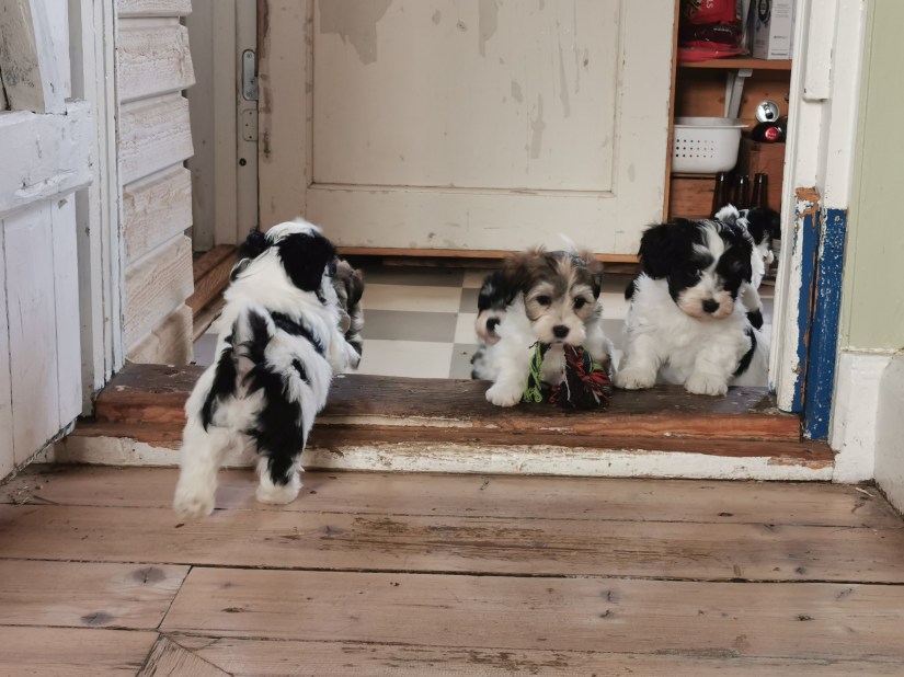 En efter en ”försvinner” valparna. Lite sorgligt men man känner ändå att de måste iväg och få den stimulans de behöver. Några söta bilder blev det dock.