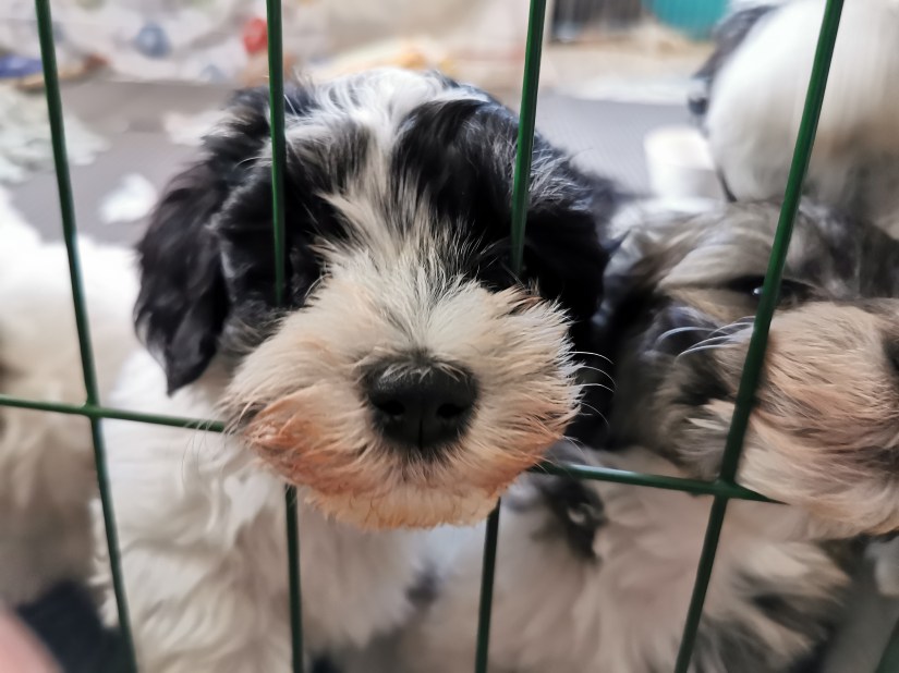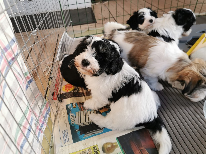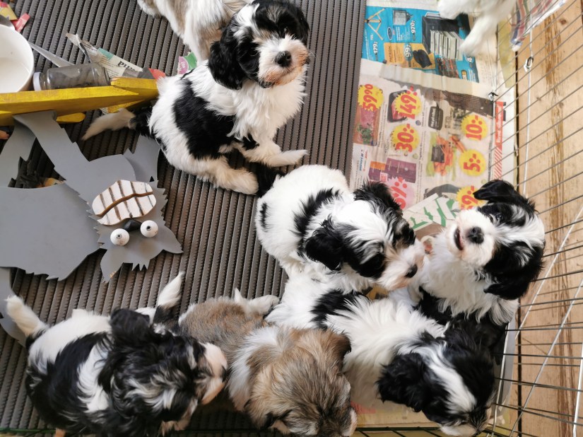 Det blev lite snabbt tagna 7-veckorsbilder i alla fall under testet med främmande person. Annars finns ju filmsnuttar med varje valp på Facebook.