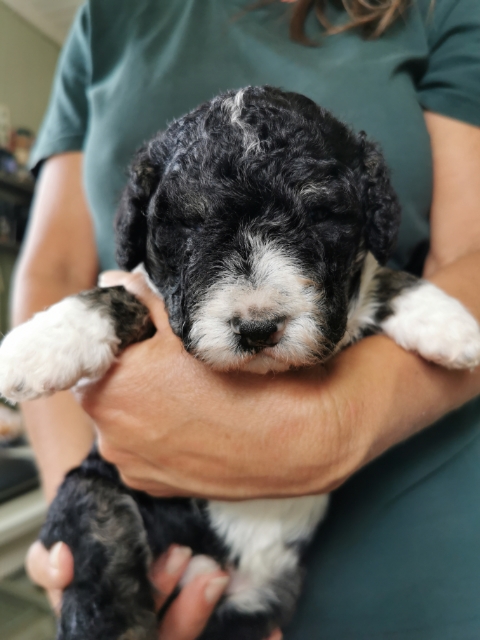 En tik av rasen perro de agua espanol behöver eventuellt omplaceras (om rätt hem hittas)